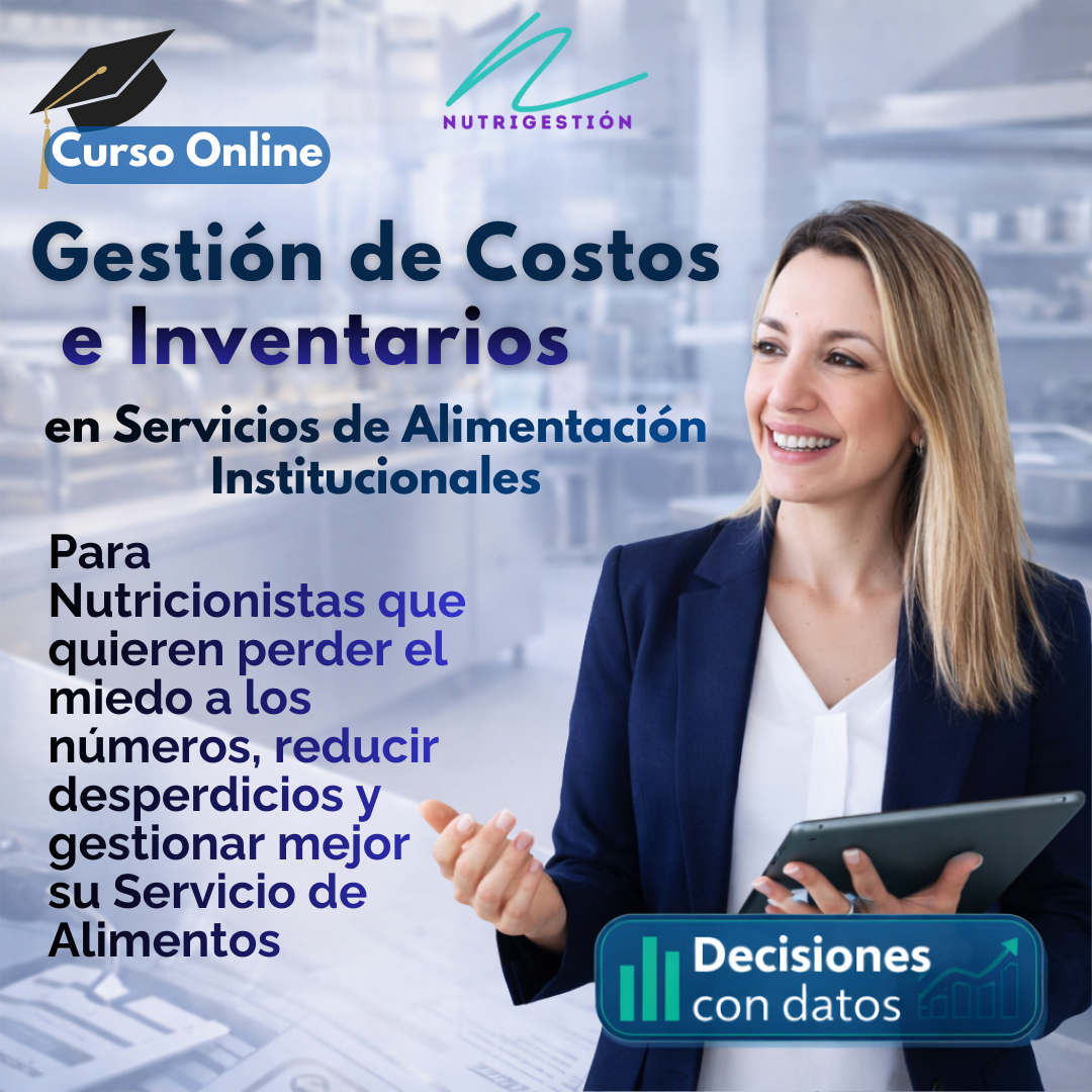Una formación práctica y aplicada, orientada a nutricionistas que trabajan en Servicios de Alimentación Institucionales y quieren dejar de improvisar en la gestión de costos, inventarios y recursos.